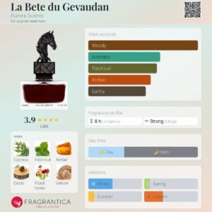 As the scent deepens, the base notes ground you in the mysteries of the universe. Patchouli, cedarwood, and vetiver form an earthly foundation, while musk lingers like the echoes of a celestial melody. La Bête de Gevaudan is more than a fragrance; it’s an invitation to embark on a cosmic adventure.